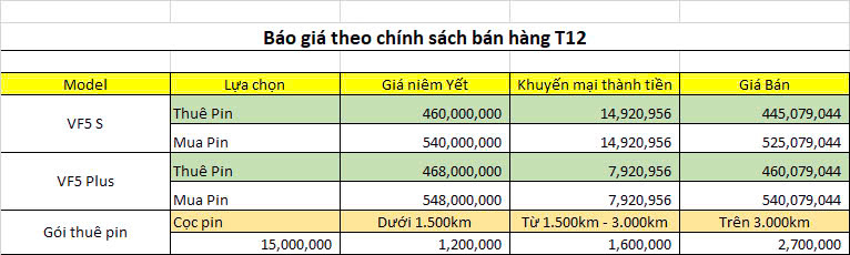 VF 5 Plus lắp một môtơ điện, công suất tương đương 134 mã lực, mô-men xoắn 135 Nm. Bộ pin lithium dung lượng 37,23 kWh, cho quãng đường di chuyển trên 300 km sau mỗi lần sạc đầy, theo công bố từ hãng. Thời gian sạc của pin cũng khá ấn tượng, khi mà chỉ mất khoảng 30 phút là đã có thể được 70% Pin.